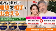 「日付から探す」機能や2種類の身バレ防止機能、セーフティチェックなど独自機能が充実しており、使いやすさが高く評価されています。会員数はまだ大手ほど多くありませんが、ライバルが少ない今こそ出会いやすいタイミングといえます。